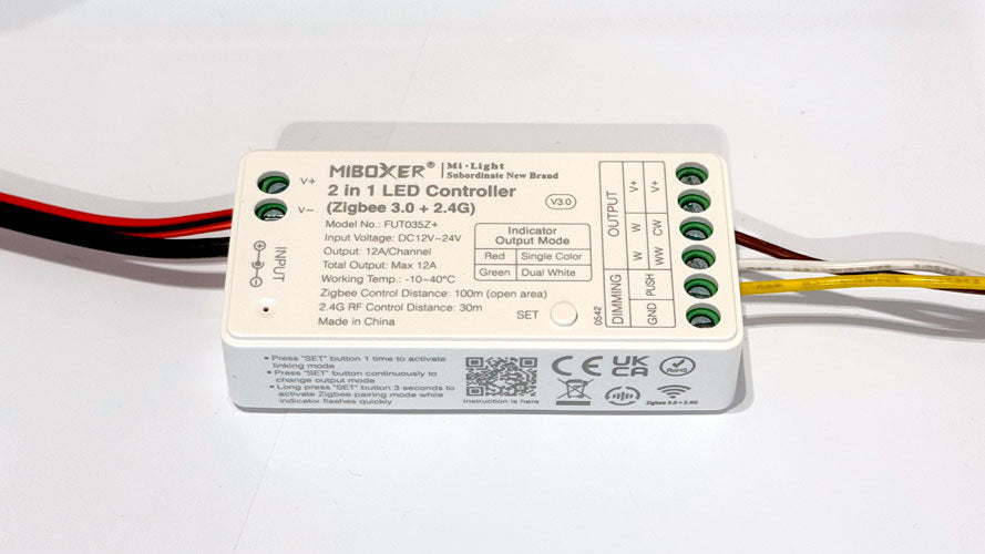 - Controller: MiBoxer 2-in-1 Zigbee LED Controller (dual-channel CCT and single-color strip control)