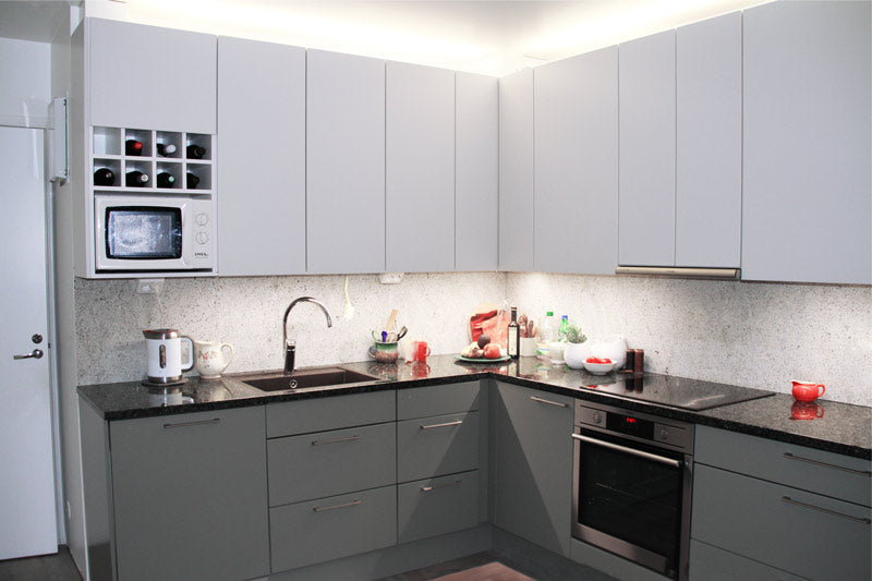 LED-They are a very effective and practical choice for kitchen lighting. They provide even light on kitchen worktops and cabinet doors and can be easily installed, for example, inside an aluminium profile. LED-The strips allow you to create different atmospheres with different lighting colours, as they are available in a range of colour temperatures. They are easy to install and offer a wide choice of colour temperatures and wattages.