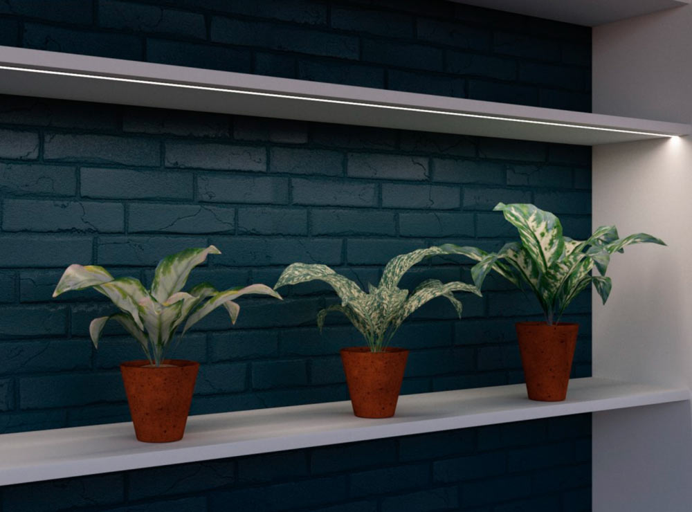 Corner profiles are designed to be installed, for example, in the corners of cabinets or on the edges of walls and ceilings. Corner profiles usually distribute light at an angle of 45 degrees, which makes them an excellent choice for areas where you want to direct light in a specific direction. Corner profiles are well suited, for example, for workspaces or display windows where you want to focus light on a specific point.
