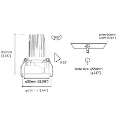 GENIE 8W LED-downlight är en snygg och mångsidig belysningslösning som kombinerar högkvalitativt ljus och innovativ bländningskontroll. Det perfekta valet för moderna interiörer! GENIE 8W LED-downlight erbjuder högkvalitativ belysning och en bländfri ljusupplevelse. Färgåtergivningsindex CRI90 garanterar naturliga färger och innovativa bländningskontrolllösningar säkerställer en behaglig belysning. Denna downlight är speciellt utformad för allmän- och accentbelysning i interiörer. Kantfärgen är vit, interiören är mattsvart.