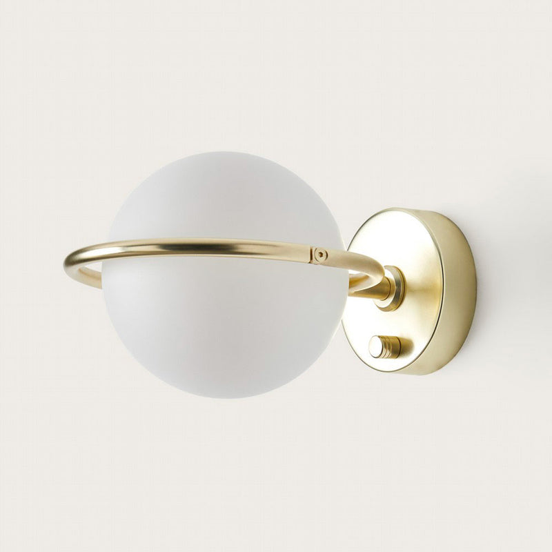 Stylish brass LED-wall lamp with beautiful opal/white glass spherical diffuser and brass body. Lamp base 1 x G9 5W 2700K, bulb included in the price and can also be changed by the customer if necessary. 5W G9 bulb.