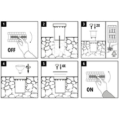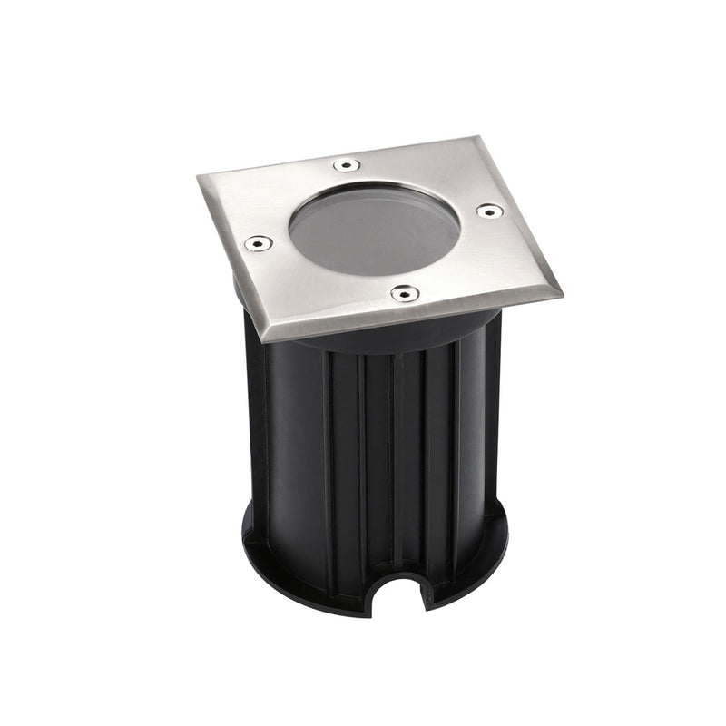 Square angular INGRESS LED-ground luminaire for atmospheric lighting on terraces, paths to outdoor patios or to highlight a garden. Made of stainless steel and tempered glass cover is non-destructive. You can choose the colour and wattage of the light with your own GU10 (max. 35w) bulb (bulb must be purchased separately). See installation instructions here.