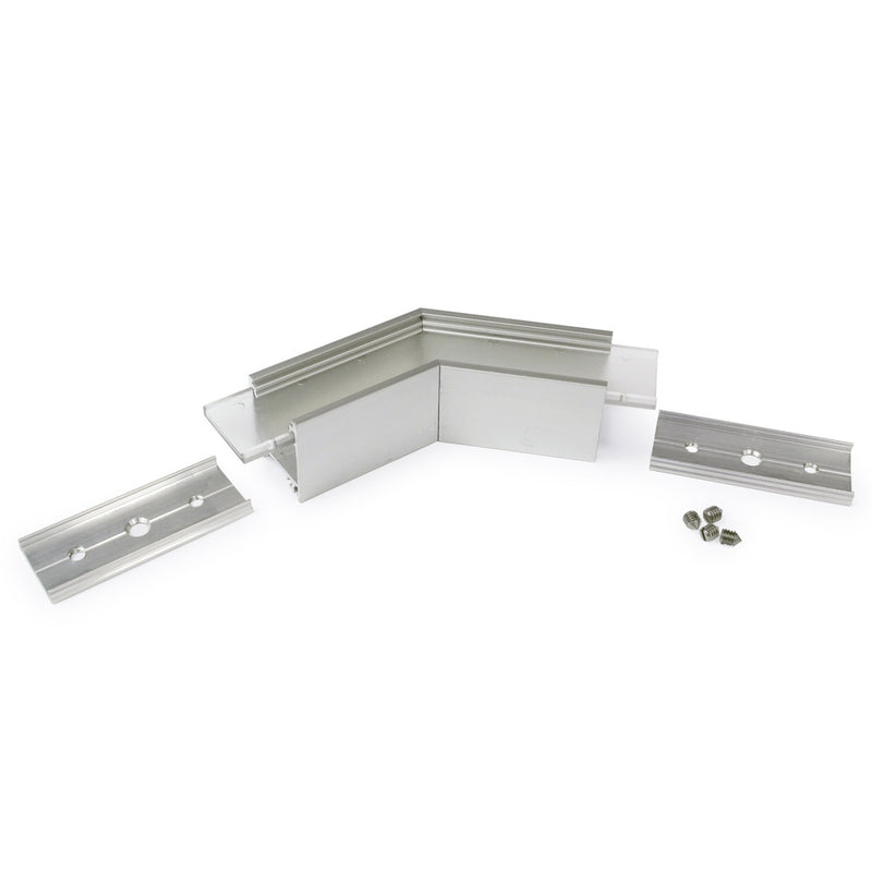 LINJA20 LED-135° corner piece of the profile. The corner pieces make the installation of the profile easy, they stiffen the profile and there is no need to cut the LED profile to length. In the middle, a clear stiffening piece of diffuser, through which light can also pass at an angle. The side length of the corner piece is 5cm in each direction.