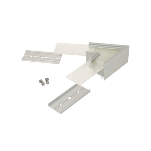 LINJA20 LED-60° corner piece of the profile. With corner pieces the profile is easy to install, they stiffen the profile and there is no need to cut the LED profile into a straight line. In the middle, a clear stiffening piece of diffuser, through which light can also pass at an angle. The side length of the corner piece is 5cm in each direction.