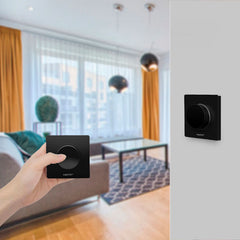 Easy to use and comfortable! ON/OFF by pressing the roller, turning the roller to dim and brighten the lights and if you have an EASY RF 2.4G series tunable white LED-FUT035S or a bulb, pressing and holding (3 seconds) the roller will put the controller in colour temperature control mode, i.e. you can adjust the colour temperature by turning the roller. When the colour temperature has not been changed for a few seconds, the control returns to the dimming mode by rotating the roller. Can be attached to any surface with a handy magnetic plate, which is fixed to the surface with the supplied adhesive tape. For dimmable lights only, ON/OFF and of course dimming by rotating the roller.