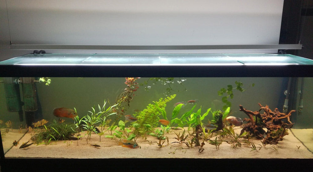 Akvaariovalaistus on toteutettu tehokkaalla LED-valonauhalla sekä riippuasennetulla LED-profiililla.