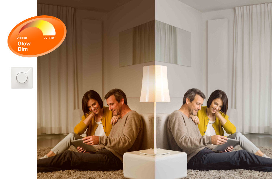 Osramin Glow Dim LED-lampulla luot todellisen tunnelmavalaistuksen. LED-lampun valonväri laskee 2700K -> 1700K, lähemmäs ns. kynttilänvaloa. Normaalisti LED-lamppuja himmennettäessä valonväri ei laske, vain valovoima, jonka vuoksi tämä lamppu luo erityisen kauniin tunnelmavalaistuksen iltoihin ja juhliin, ollen päivällä kuitenkin miellyttävän valoisa.