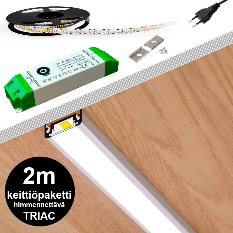 2m keittiöpaketti TRIAC - sis. PINTA14 LED-profiili 2m, 12,5W/m 24V LED-nauha 2m ja TRIAC himmennettävä muuntaja