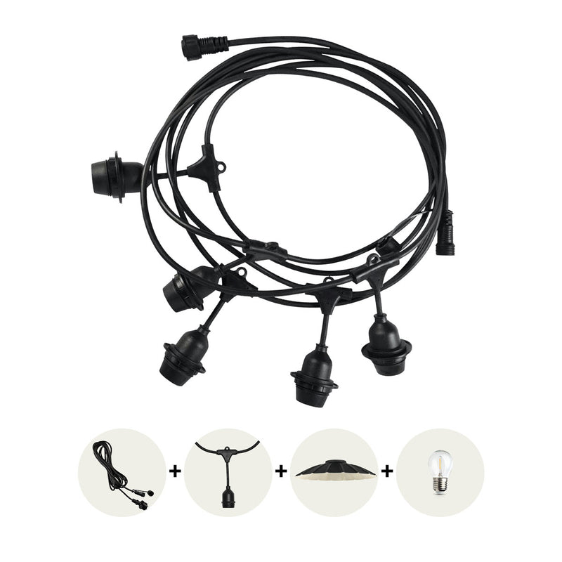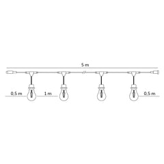 CRETE LED-valoketjusarjan 5m valoketju sis. 5kpl E27 lampunkantoja, IP44 (pelkkä 5m ketju)