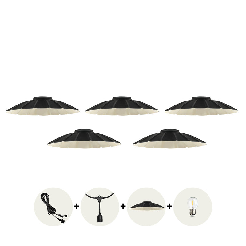 CRETE LED-valoketjusarjan näyttävät, metalliset "varjostimet" 5kpl, väri musta. Materiaali pulverimaalattua metallia. Halkaisija 20cm, korkeus 4cm.