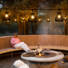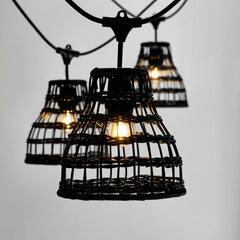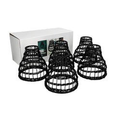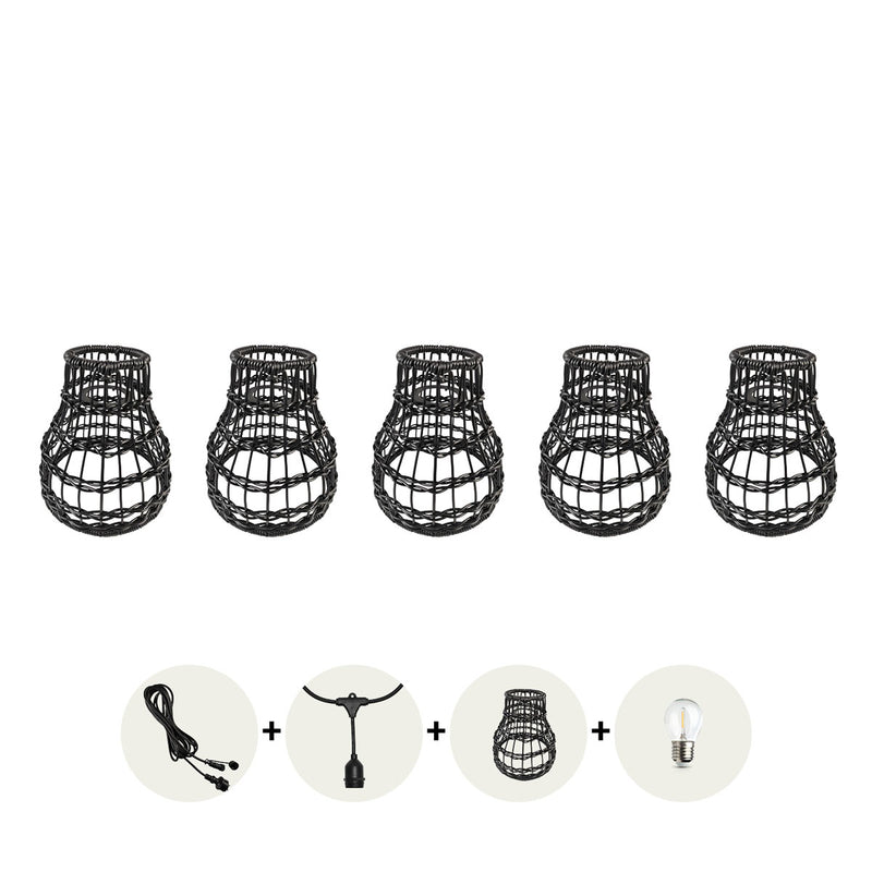 CRETE LED-valoketjusarjan näyttävät, suurikokoiset 18 x 18cm polyrottinkiset "varjostimet" 5kpl, väri musta. Materiaali polyrottinkia, käsintehdyt.