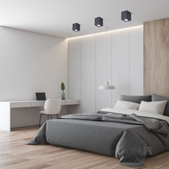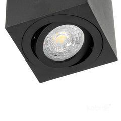 Moderni ja tyylikäs musta neliönmallinen LED-kattovalaisin GU10-kannalla, valmistettu kokonaan alumiinista. GU10-lamppu ei sisälly mukaan, täydennä haluamallasi tehoisella ja värisävyisellä lampulla. (max. 30W). Lamppua voidaan säätää 15 °.