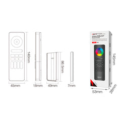LED-kauko-ohjain, jolla voit ohjata mitä tahansa LED-nauhoja ja älylamppuja Smart LED 2.4G - sarjastamme. Värejä sekä värilämpösäätöä ohjataan himmenyspyörällä ja himmennin liu'uttimella. Useita erilaisia modeja valojen ohjaukseen ja 4 ryhmää. Pääsäädin Master On/Off painike kaikille kanaville. Himmennys – kanavia voidaan himmentää yhdessä tai erikseen. Himmennysaste 0,1-100%. Kaukosäädinteline mukana.
