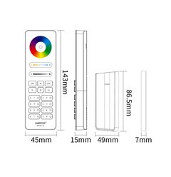 LED-kauko-ohjain, jolla voit ohjata mitä tahansa LED-nauhoja ja älylamppuja Smart LED 2.4G - sarjastamme. Värejä sekä värilämpösäätöä ohjataan himmenyspyörällä ja himmennin liu'uttimella. Useita erilaisia modeja valojen ohjaukseen ja 8 ryhmää. Pääsäädin Master On/Off painike kaikille kanaville. Himmennys – kanavia voidaan himmentää yhdessä tai erikseen. Himmennysaste 0,1-100%. Kaukosäädinteline mukana.