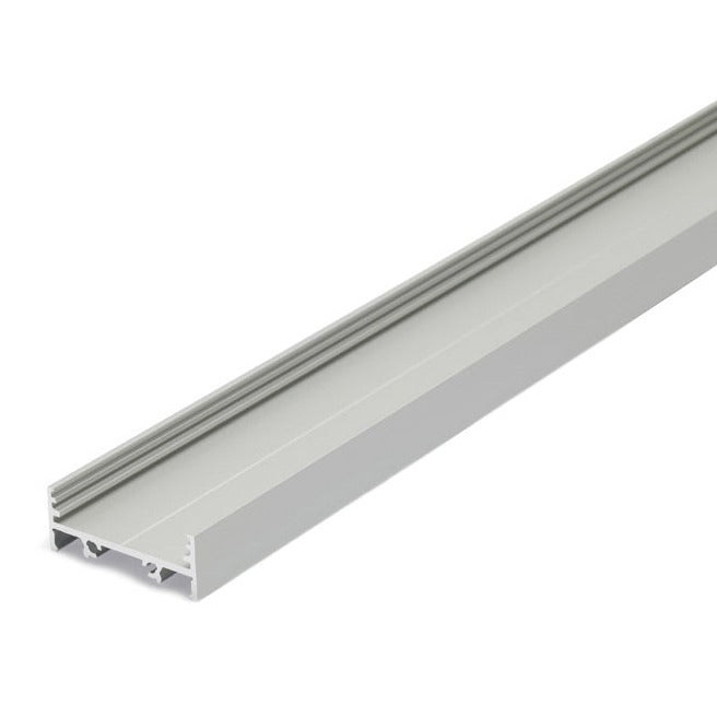 Iso pinta-asennettava LED-profiili, matala malli. Mitat 33,4 x 12,8mm, eli jopa kolme led-nauhaa voidaan asentaa tähän profiiliin rinnakkain tehokkaan valon aikaansaamiseksi. Monikäyttöinen, saatavilla kolmessa sävyssä ja useilla erilaisilla lisätarvikkeilla.