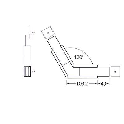 MONI30-07 LED-profiilin 120° kulmapala. Kulmapaloilla profiilin asennus on helppoa, ne jäykistävät profiilin eikä led-profiilia tarvitse leikata jiiriin. Keskellä kirkas jäykistävä pala diffuusoria, jonka läpi valo pääsee myös kulmassa. Kulmapalan sivupituus 10cm kumpaankin suuntaan.