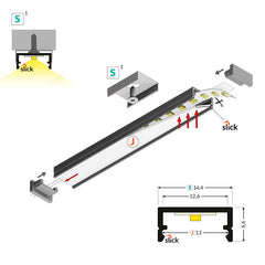 - Profiili sopii enintään 12 mm leveille LED-nauhoille, mutta helpoin asentaa max 10 mm nauhoille.