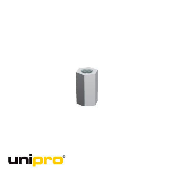 Unipro 3-vaihekiskojärjestelmän M6 kierretangon jatkomutteri. Materiaali terästä.