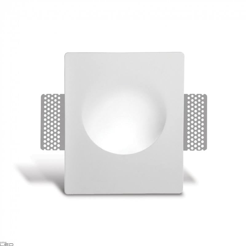 Uppoasennettava kipsinen seinävalaisin, jonka mitat ovat 250x210mm, syvyys 78mm ja asennetaan 253x213mm aukkoon. Valaisimeen sopii GU10 polttimo, ostettavissa erikseen.