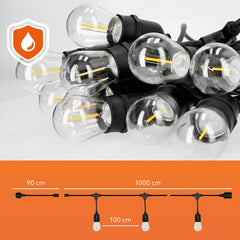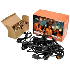 Valoketjusetti MIMOSA2 10m & 10kpl 1W 2700K E27 LED-polttimoa, IP44 ulkokäyttöön sopiva