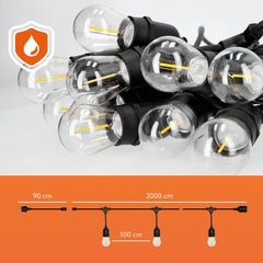 Valoketjusetti MIMOSA2 20m & 20kpl 1W 2700K E27 LED-polttimoa, IP44 ulkokäyttöön sopiva