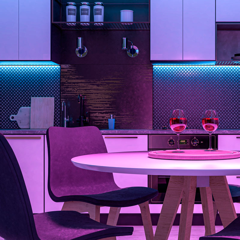 Detta gör RGB+CCT LED-remsor till ett utmärkt val för belysningsuppgifter, till exempel där mångsidig färgbelysning krävs och där man även vill justera färgtemperaturen på det vita ljuset efter behov.