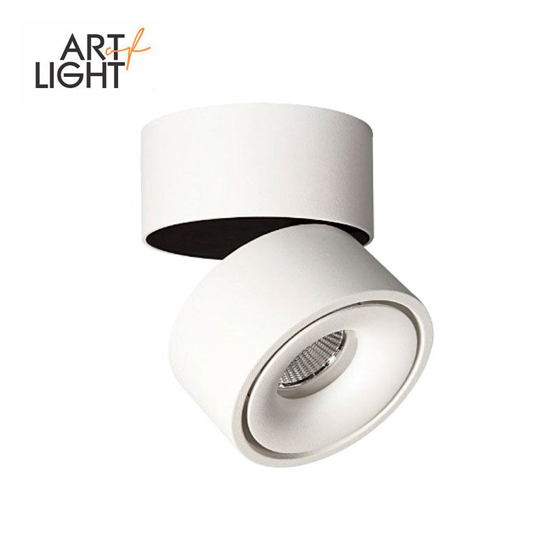 Utanpåliggande, modern och snygg vit rund LED-taklampa med 13,5 W effekt - ljusflöde 850 lm, färgtemperatur varmvit 3000K och hög färgåtergivning CRI>90. Lampans nedre del kan vridas 90° i sidled, så att du kan belysa väggen eller vilken riktning du vill eller hålla lampan i grundläget för att lysa direkt nedåt. Tillverkad helt i aluminium, högkvalitativa Philips LED-dioder.