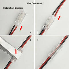 Glöm avisolering, lödning och kabeljustering! Wire-X2 möjliggör enkel och säker anslutning: tryck bara in kablarna i kontakten och lås locket. Speciellt lämplig för snabb och pålitlig anslutning av 2-trådiga matningskablar för 12V och 24V enfärgade LED-remsor.