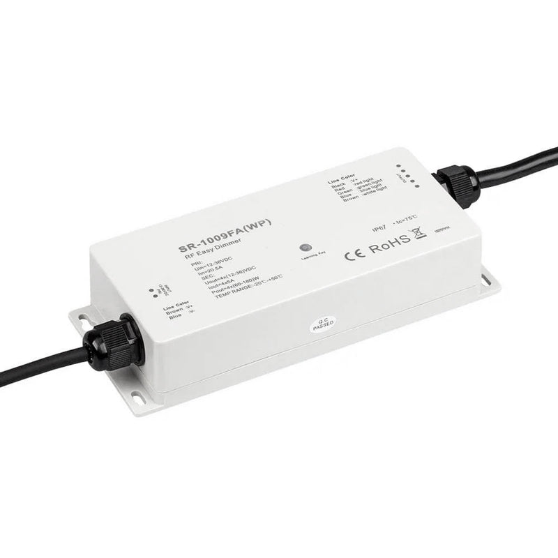 RF WiFi trådlös LED-dimmer/mottagare, RGBW och temperaturjusterbar (CCT) med fyra kanaler 4x5A - även för utomhusbruk IP67