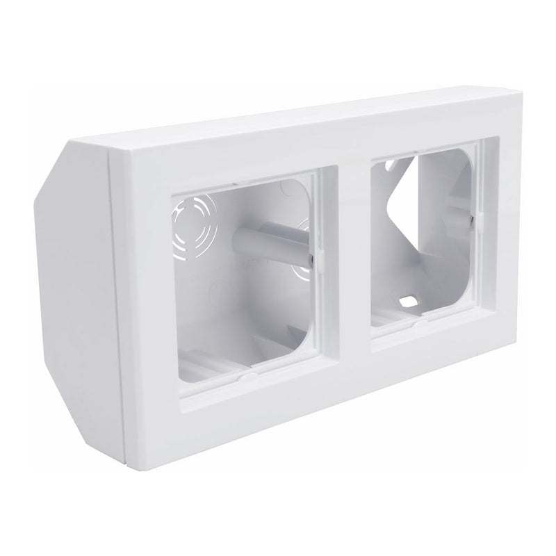 För hörninstallationer, t.ex. under skåp. Används med Optima-seriens uttag, strömbrytare etc. Levereras med en kombinerad täckplatta. Färg vit RAL 9003. Inkluderar inte uttag eller strömbrytare, måste beställas separat.