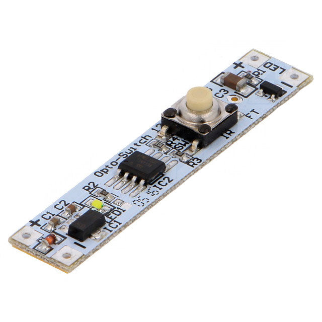 Enkel LED-strömbrytare/dimmer för 12V och 24V LED-remsor vid användning av PINTA10, URA10 eller KAARI12 LED-profiler (med C-diffusor). Inkluderar en perforerad bit opal C-diffusor för installation. Installeras inuti profilen i änden, knappen kommer ut ur profilkåpan. Kort tryck PÅ/AV, långt tryck dimmar och ljusar upp.