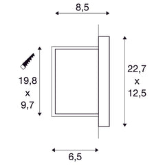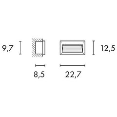 Armaturen installeras infälld på vägg, mura eller staket. Installationsmåtten måste noggrant beaktas vid val av installationsplats. Armaturens skyddsklass IP44 gör den till ett utmärkt val för utomhusområden där hållbar och tillförlitlig belysning behövs.