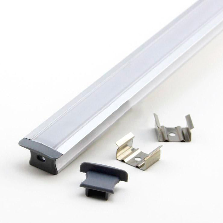PT-UPPO12 infälld LED-profil med diffusor, ändkåpor och plastklämmor, längd 2m
