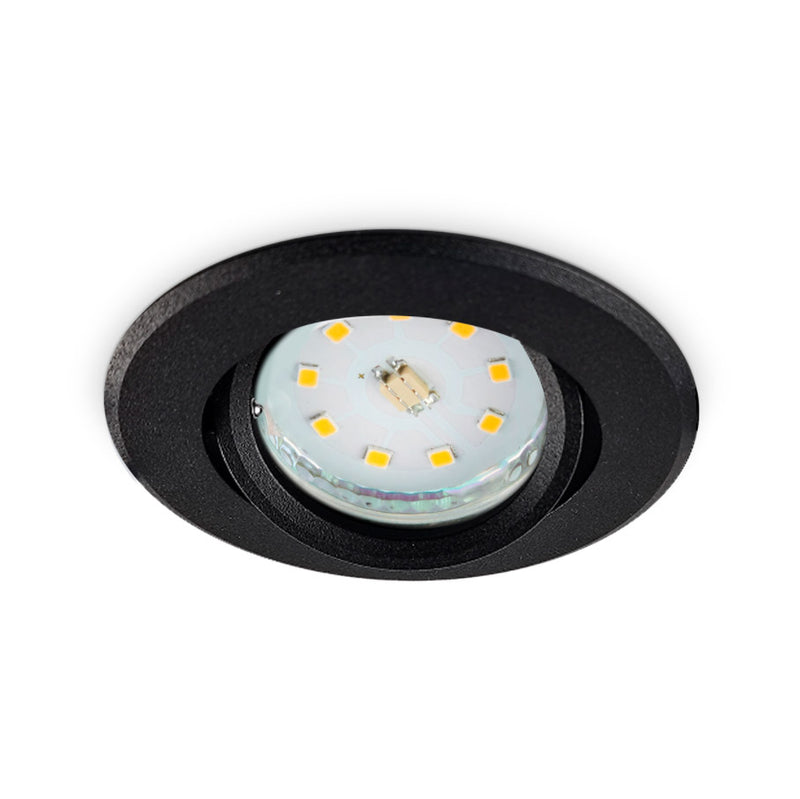 Justerbar mattsvart rund spotlight med separat lamphållare för inomhusbelysning, allmänbelysning, vardagsrum och accentbelysning. Stål, funktionell och minimalistisk design. För MR16/GU5.3-lampor. Ett praktiskt val, eftersom du kan välja vilken GU5.3-lampa som helst här, vilket ger dig full kontroll över färgtemperatur och ljuseffektivitet. Dimbar om en dimbar transformator och lampa kombineras.